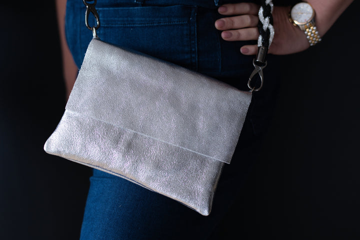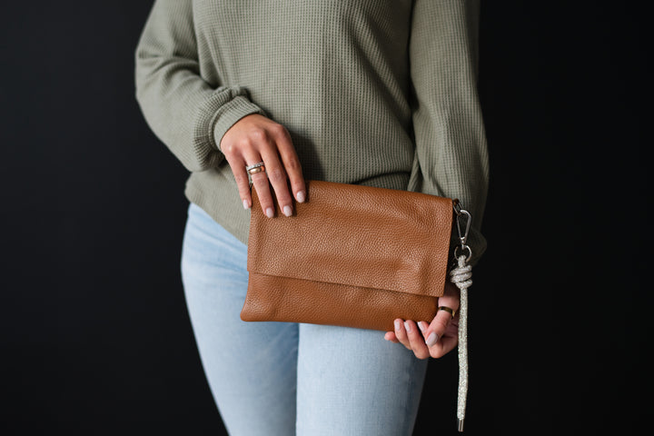 This stunning Trio Leather Bag transitions effortlessly from day to evening, adapting to your every need. Crafted from high-quality Italian leather, it can be worn as a chic crossbody, transformed into a stylish shoulder bag with a 16" strap, or carried as an elegant clutch. For added convenience, attach the wristlet strap for a hands-free option. Its timeless design pairs beautifully with charms for a personalized touch, making it both functional and fashionable. Perfect for any occasion, this bag is your ultimate style companion.