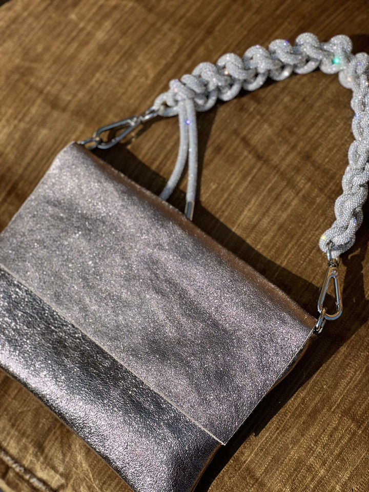 Matching leather crossbody strap included. Crystal straps and accessories are sold separately.